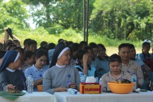 The event was attended by the Head of the Environmental Agency, the Board of Trustees of the Santu Fidelis Foundation, the Chairperson of the Foundation and staff, the Senior High School Supervisor of the Regional Education Office Region XIV, the Head of Teluk Dalam Sub-district, the Head of Community Development Unit (Kasat Binmas) and staff, Catholic Education representatives, alumni and parents’ representatives, as well as the Principal, all teachers, and students of SMA Swasta Katolik Bintang Laut.